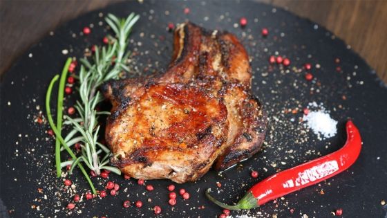 АНТРЕКОТ ИЗ СВИНИНЫ НА КОСТИ С ТОМАТНЫМ СОУСОМ И ПЕРЦЕМ ЧИЛИ