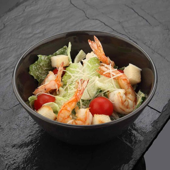 Цезарь с креветкой в плетеной хрустящей корзинке из слоёного теста с сыром Грано и дробленая фисташка 180 гр.