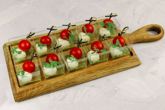 Канапе с мини-моцареллой,помидоркой черри, соусом песто и базиликом 30 гр.
