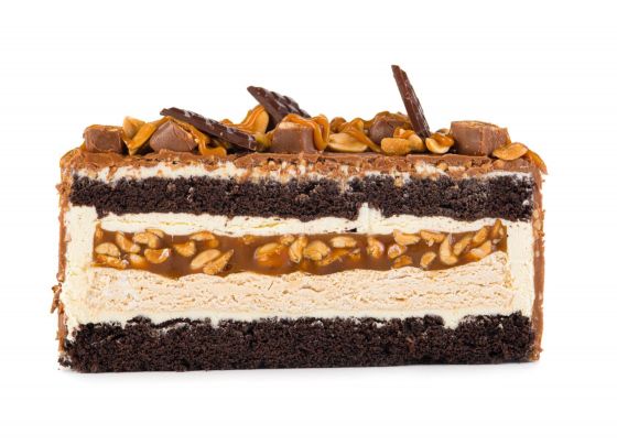 Состав: бисквит шоколадный, карамель соленая, арахис, сыр сливочный, шоколад, стружка миндаля