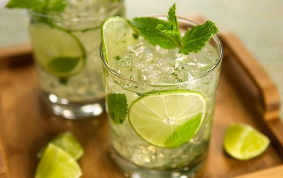 Состав: газ.вода, мята, лайм, сахарный сироп, ром, лед