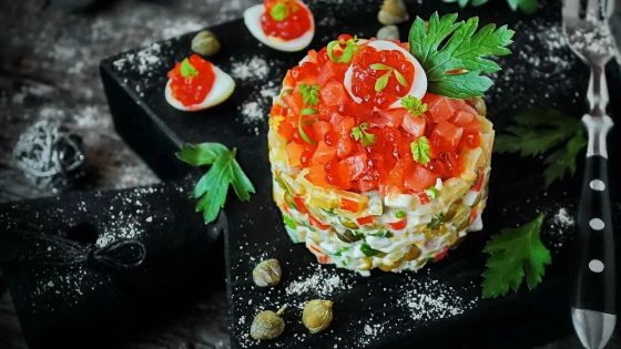 ОЛИВЬЕ ЛЮСЬЕН С СЕМГОЙ И КРАСНОЙ ИКРОЙ