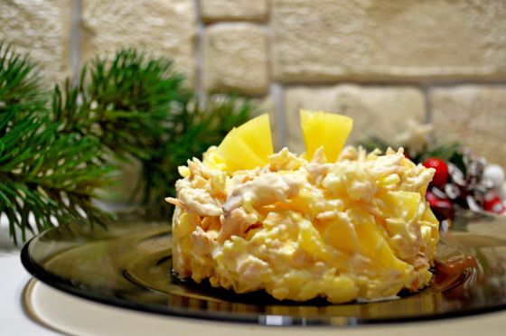 Состав: курица копченая, ананас, мак пищевой, сыр, черри, майонез