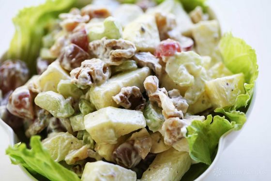 Диетический салат из стеблей сельдерея, яблочек, винограда, грецких орехов с йогуртовой заправкой 90 гр.