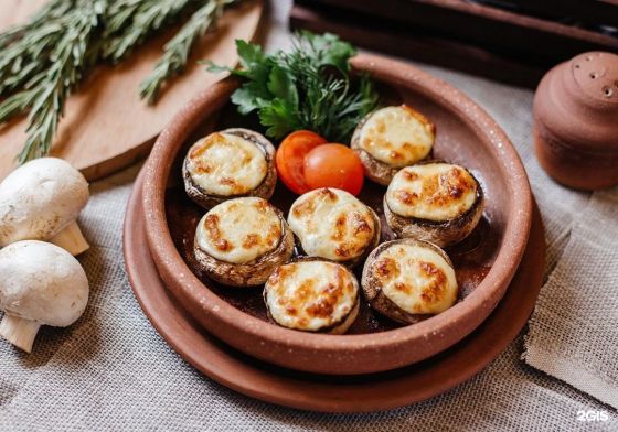 Шляпки шампиньонов с начинкой из ветчины, запеченные под сыром Моцарелла до хрустящей золотистой корочки