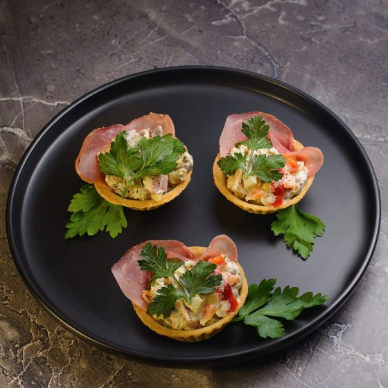 Куриное филе, изюм, чеснок, перец болгарский, черри, грецкий орех, заправка. 60 гр